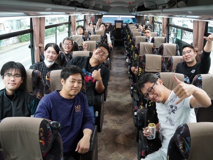 朝から元気なメンバーが集合し、いよいよ社員旅行がスタート。